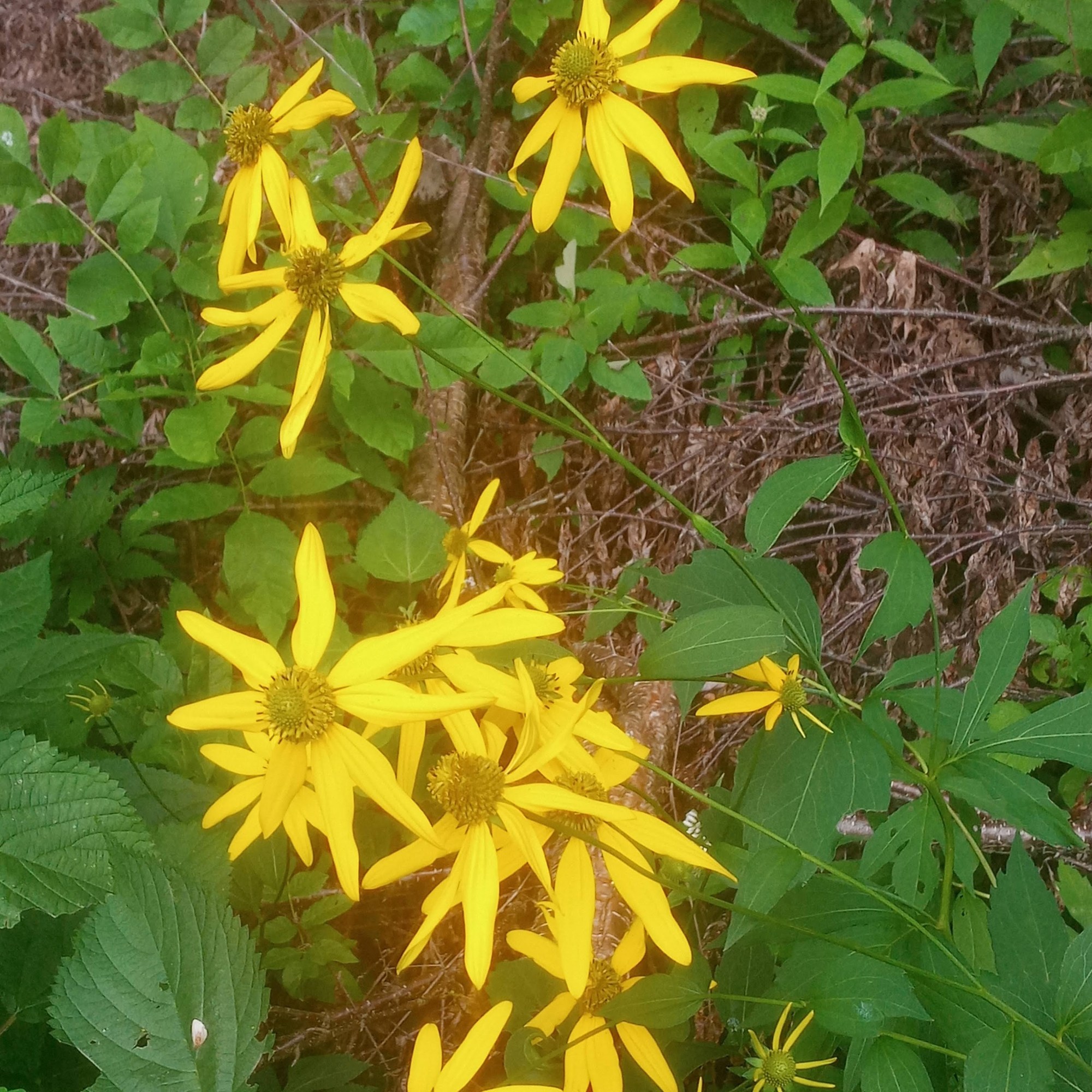 Wingstem or Yellow Ironweed (Top Middle), is another native flower that serves as a host for moth and butterfly larvae.
