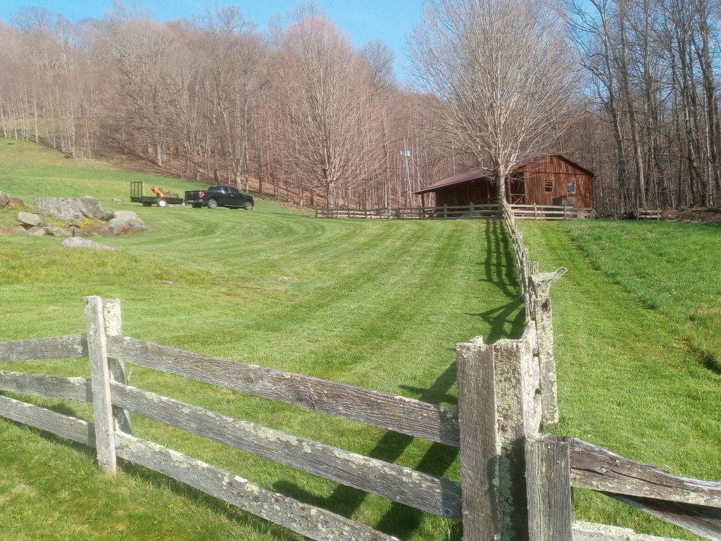 Cleaning up and repairing things from the storm set us back, but we’ve worked hard to get caught up. We got the sticks and leaves up early this spring before the leaves and grass started to grow. Now we are weedeating roadsides and back on track.